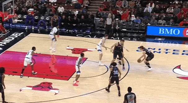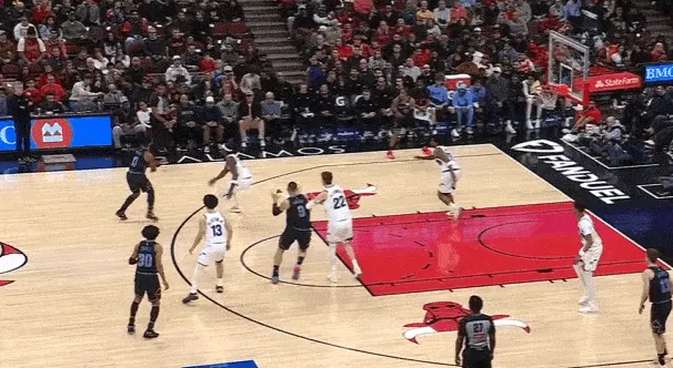 奥克罗底角接球沿底线突破吸引菲利回收护框,武器埋伏在近框区域接奥克罗突破内传内的瞬间迅速起抛投,完成快速终结。